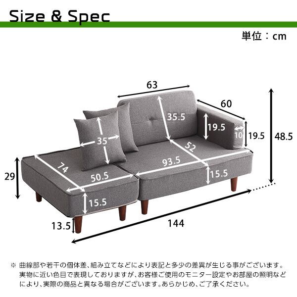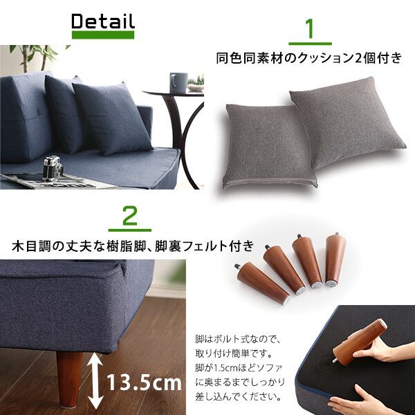 コンパクト カウチソファー 約幅93.5cm デニム調生地 スチールパイプ ウレタンフォーム 脚付き リビング 完成品