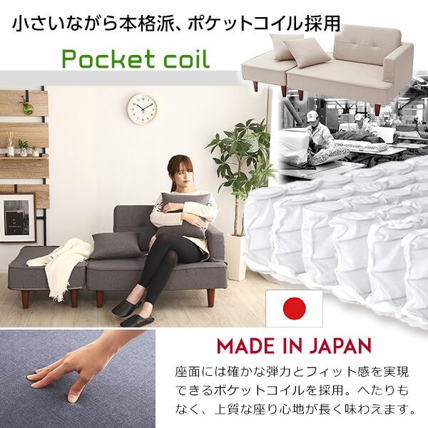 座面にはポケットコイルが搭載されており弾力のある座り心地です。
