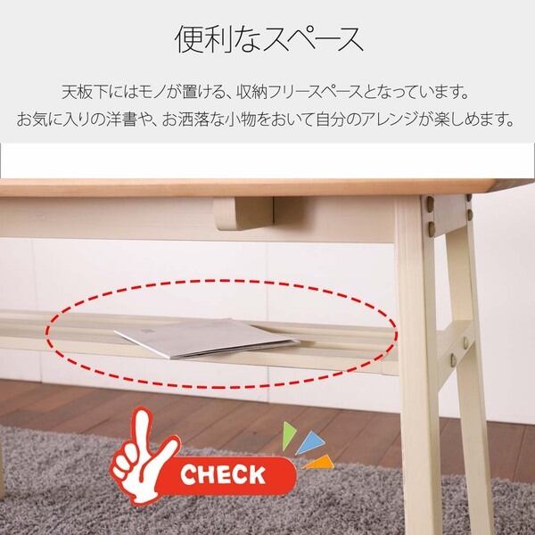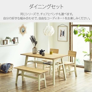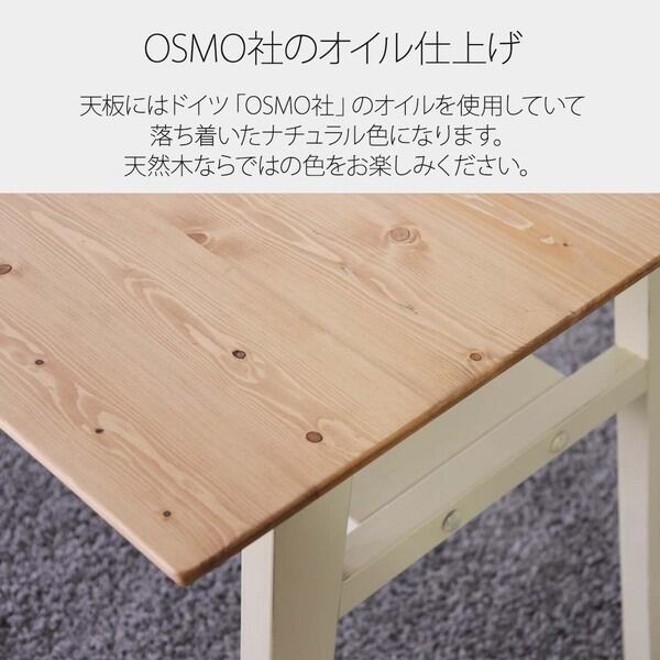 天板はパイン無垢材にオイル塗装で仕上げた風合い豊かなダイニングテーブル。脚はヴィンテージ感のあるかすれた塗装を表現しています。
