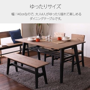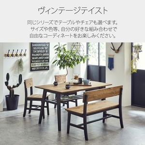 天板はパイン無垢材にオイル塗装で仕上げた風合い豊かなダイニングテーブル。脚はヴィンテージ感のあるかすれた塗装を表現しています。