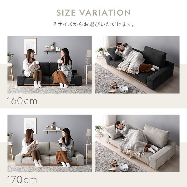 幅170cm:幅170×奥行76×高さ54cm(床面からクッション上部まで)
