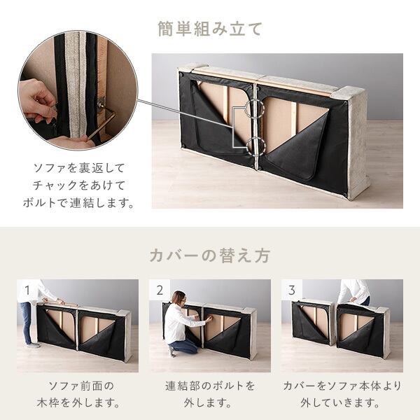 ローソファ フロアソファ 分割式 カバーリング 洗えるカバー ロースタイル インテリア家具 ソファ 組立品
