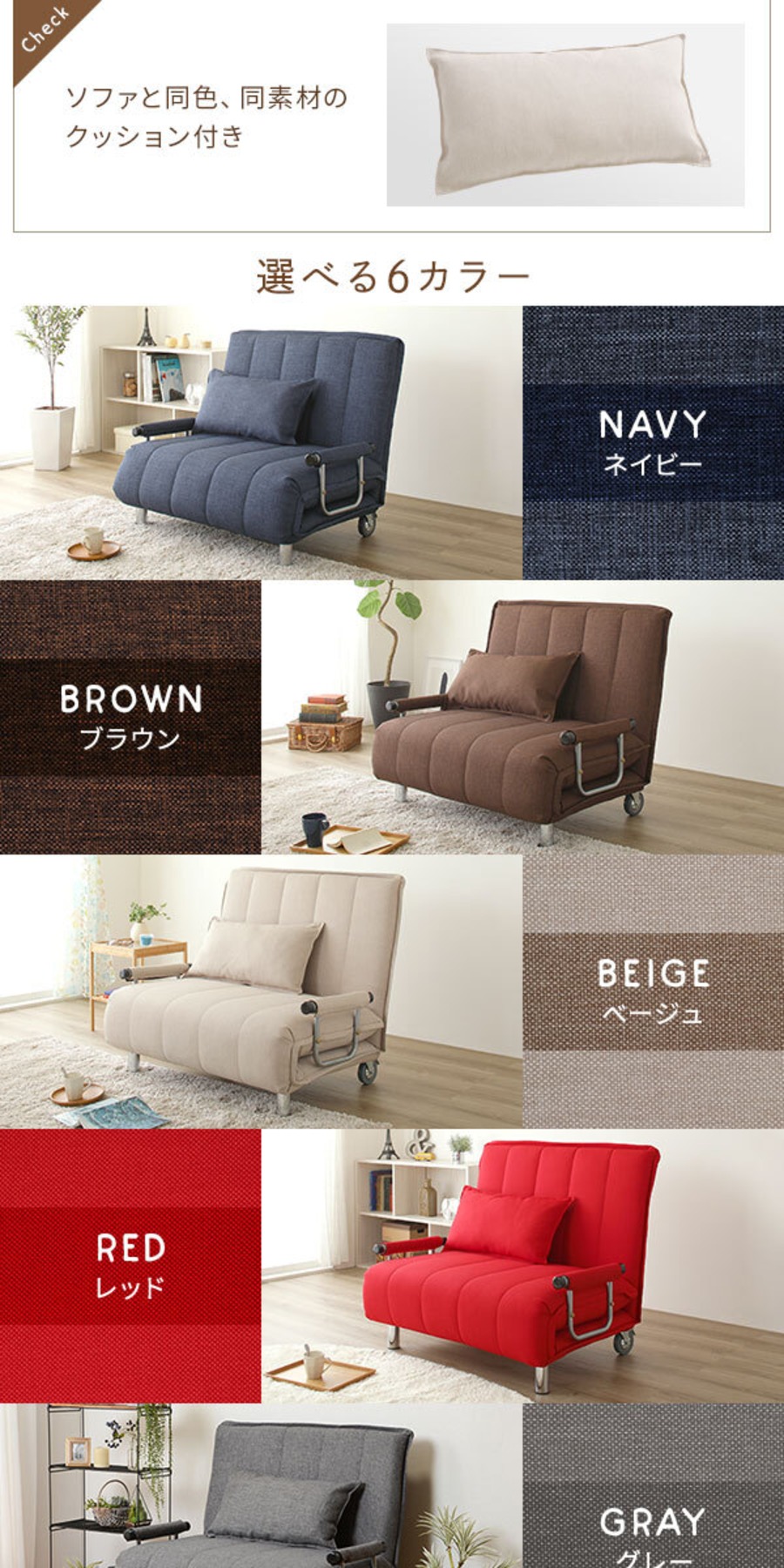 ソファーベッド 約幅101cm 折りたたみ式 リクライニング キャスター 肘付き 3way カウチソファー リビング